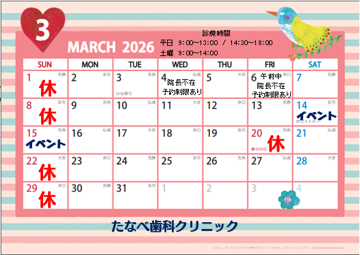 3月の診療予定です