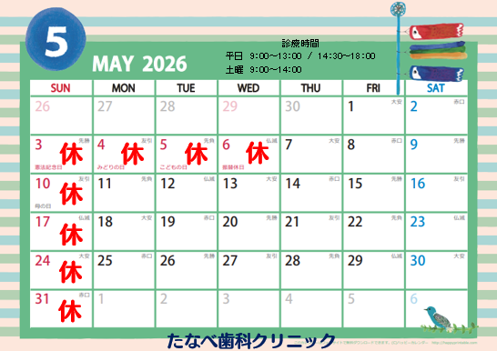 5月の平日は通常通り診療しています。