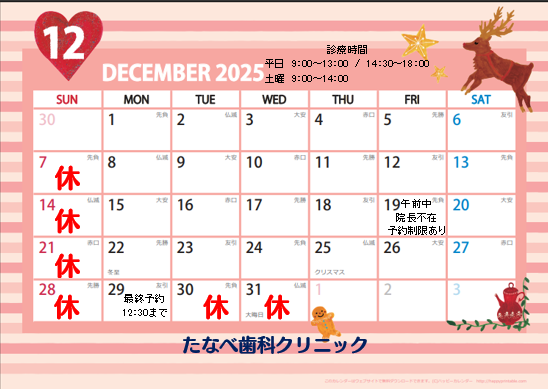 12月の診療予定です