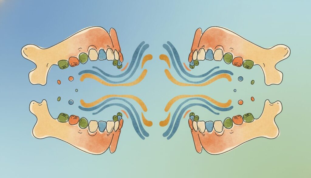 受け口は噛み合わせのずれを引き起こし、咀嚼機能の低下や顎の疲労と痛み、上の前歯の過度な摩耗を招く可能性があります。